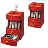 This beautiful cherry finish valet stores your personal items such as wallets, keys, cash, watches and rings. The Deluxe Valet sorts and counts up to 20 coins at a time right into coin tubes. Each coin tube holds a full roll of pennies, nickels, dimes and quarters. An overflow tray is located behind the coin tubes and will catch coins when the tubes are filled. Its beautiful appearance will enhance any decor from contemporary to traditional. Makes a great gift. Requires two "C" batteries (not included).